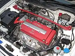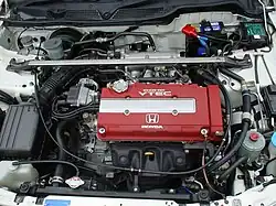 Примечание: в двигателе применяется тот же блок, что и в Integra Type R, который выше, чем блок B16A, но с кривошипом с тем же ходом, что и у B16A. Для этого применяются удлинённые стержни, поэтому соотношение стержня/ход выше, чем у стандартного B16[5][6].