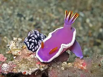 - ↑ Johnson R.F. & Gosliner T.M. (2012) Traditional taxonomic groupings mask evolutionary history: A molecular phylogeny and new classification of the chromodorid nudibranchs. Архивная копия от 12 октября 2014 на Wayback Machine PLoS ONE 7(4): e33479.