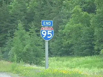 I-95 проходит через южную часть штата Коннектикут, затем направляется в Род-Айленд и проходит через столицу штата Провиденс. В Массачусетсе Interstate 95 огибает Бостон и пересекает границу с Нью-Гэмпширом. Вскоре I-95 попадает на территорию Мэна. I-95 заканчивается на границе США и Канады.