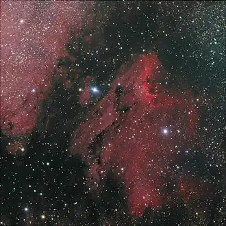 Туманность Пеликан (известная также как IC 5070 и IC 5067), находится на расстоянии от Земли около 2 тысяч световых лет в «высоко летящем» созвездии Лебедя. «Космического пеликана» можно найти на подходящем для него месте — недалеко от восточного «берега» туманности Северная Америка (NGC 7000), другой туманности с удивительно знакомой формой в созвездии Лебедя. Туманности Пеликан и Северная Америка — это части одной большой области звездообразования со сложной структурой, почти такой же близкой к нам, как и более известная туманность Ориона. С нашей точки зрения тёмные облака пыли обрисовывают глаз и длинный клюв пеликана, а яркий фронт ионизованного газа напоминает изогнутую шею и голову птицы.