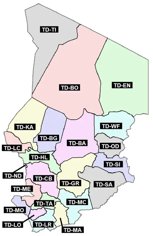 ISO 3166-2:TD — стандарт Международной организации по стандартизации, который определяет геокоды. Является подмножеством стандарта ISO 3166-2, относящимся к Чаду. Стандарт охватывает 22 региона. Каждый код состоит из двух частей: кода Alpha2 по стандарту ISO 3166-1 для Чада — TD и двухбуквенного кода, записанных через дефис. Дополнительный двухбуквенный код образован созвучно названию, аббревиатурой названия региона. Геокоды регионов Чада являются подмножеством кодов домена верхнего уровня — TD, присвоенного Чаду в соответствии со стандартами ISO 3166-1.