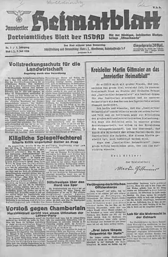 В 1945 году преемницей Innviertler Heimatblatt стала газета Innviertler Volkszeitung, публикация которой была прекращена в том же году»[5].