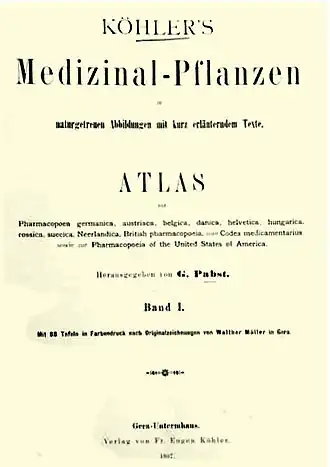 - Gustav Pabst (Hrsg.). Köhler's Medizinal-Pflanzen in naturgetreuen Abbildungen mit kurz erläuterndem Texte: Atlas zur Pharmacopoea germanica, austriaca, belgica, danica, helvetica, hungarica, rossica, suecica, Neerlandica, British pharmacopoeia, zum Codex medicamentarius, sowie zur Pharmacopoeia of the United States of America. — Gera-Untermhaus, 1883—1914. — doi:10.5962/bhl.title.623.