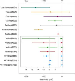 - ↑ Thümmler, T. (2010). Introduction to direct neutrino mass measurements and KATRIN. Nuclear Physics B: Proceedings Supplements. 229–232: 146–151. arXiv:1012.2282. Bibcode:2012NuPhS.229..146T. doi:10.1016/j.nuclphysbps.2012.09.024.