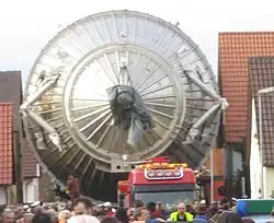 Спектрометр построен компанией MAN DWE GmbH из Деггендорфа. Несмотря на небольшое расстояние в 350 км от Карлсруэ, размеры корпуса делали невозможным его наземную транспортировку[8]. Вместо этого его доставили по воде: вниз по Дунаю к Чёрному морю, через Средиземное море и Атлантический океан в Роттердам, а затем вверх по Рейну в Карлсруэ. Это объезд длиной в 8600 км ограничил наземное путешествие только последними 7 км от доков Эггенштайн-Леопольдсхафена до лаборатории.