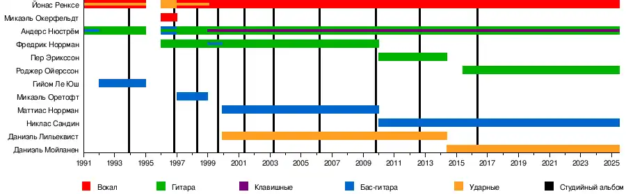 • Андерс Нюстрём — гитара, бэк-вокал, программирование (1991—1994, 1996—2025)