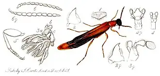 Тело удлинённое и узкое, длиной 7—16 мм. Надкрылья оставляют непокрытым задний конец брюшка. Самец почти совсем чёрный, самка ярко-жёлтого цвета с чёрной головой.