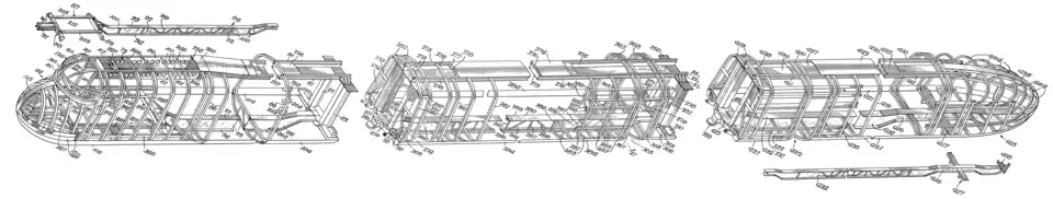 По настоянию Адамса вагоны строились безрамными[33]. Основой каждого была жёсткая «труба» пространственного стального каркаса; в моторном и в хвостовом вагоне «труба» подкреплялась мощными продольными лонжеронами[33]. Внешняя обшивка «трубы», по предложению «Пульман», выполнялась из алюминия на заклёпках и полностью охватывала подвагонное пространство[32].