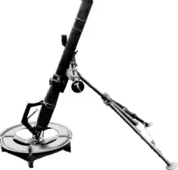 | Прототип перспективного миномёта на стадии опытно-конструкторских работ (1972): на станке (справа) и без станка, на подставке в руках миномётчика[2] | |