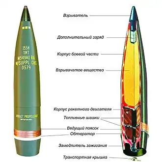 - ↑ 155MM M549A1 HE-RAP High Explosive - Rocket Assisted Projectile. General Dynamics Ordnance and Tactical Systems. Архивировано 21 февраля 2020 года.