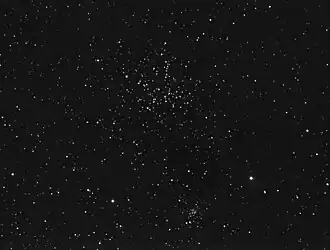 - M 36 — (в паре градусов на юго-восток) более яркое, но бедное звёздами скопление;