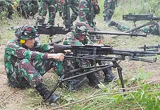 Индонезия[1] - остались на вооружении и продолжают использоваться в вооружённых силах Индонезии даже после освоения производства по лицензии бельгийского пулемёта FN MAG
