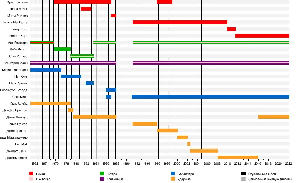 - Манфред Манн — клавишные и бэк-вокал (1971-наше время)