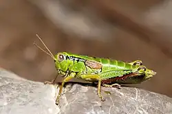- ↑ Dinghi, P.A., Confalonieri, V. & Cigliano, M.M. 2009. Phylogenetic studies in the South American tribe Dichroplini (Orthoptera: Acrididae: Melanoplinae): is the Paranaense-Pampeano informal genus group a natural clade? Zootaxa 2174: 51-62. Abstract & excerpt. DOI: https://dx.doi.org/10.11646/zootaxa.2174.1.6