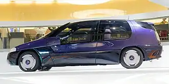 Модель получила: четырёхтактный шестицилиндровый двигатель объёмом в 2.6 л. с искровым зажиганием, 143 кВт (194 л.с.) мощности, передний привод, 3-ступенчатую автоматическую коробку передач[2]. Ключевыми изменениями во внешнем виде автомобиля стали новые двери, крыша с солнечными батареями (вырабатывавшими около 100 ватт) и ксеноновые фары ближнего света[2]. F100 получил нестандартную компоновку — минивэн вмещал пятерых человек, включая водителя, который сидел посередине, что по задумке инженеров компании обеспечивало наилучший обзор.