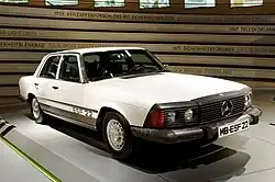 В 1971 году журнал Auto Katalog опубликовал шпионские фотографии прототипа, который находился на испытании. Предполагалось, что компания Mercedes-Benz представит новую модель, оснащённую 3,5- или 4,5-литровым двигателем, в 1972 году[5]. Концерн Daimler-Benz планировал представить новый автомобиль на Франкфуртском автосалоне 1971 года, однако ассоциация автомобильной промышленности (VDA), организатор международной автомобильной выставке, отменил мероприятие.