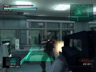 - ↑ На нём отмечена схематичная карта уровня и положение часовых. Недоступен на высоких уровнях сложности.
