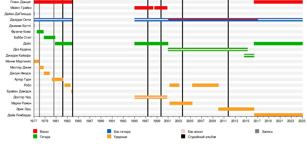 - Гленн Данциг — вокал, клавишные (1977—1983, 2016—наши дни)