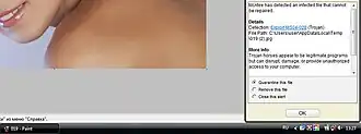 - ↑ По мнению, приведённому в enwiki. По факту же, неактивированное протрояненое изображение не диагностируется антивирусом, а в случае успешного инфицирования малварь активно противостоит диагностике. Применённая 2014/07/14 утилита CureIt от Dr.Web бодро отрапортовала There are no infected objects detected и вывалилась в синий экран.