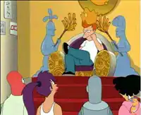 - Во время коронации Фрая на стоящем рядом Бендере висит медаль с изображением Гомера Симпсона.