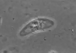Наличие полярных капсул — наиболее характерная черта Myxozoa. Полярные капсулы имеются не только у спор, но и у некоторых соматических клеток. Каждая полярная капсула содержит закрученный выворачивающийся полярный филамент, который при контакте с подходящим хозяином выворачивается и заякоривает спору, позволяя паразиту покинуть створки споры и проникнуть в тело хозяина[1].