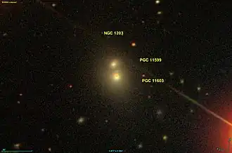 Галактика PGC 11599 или NGC 1203B часто называется частью NGC 1203, но она слишком мала, чтобы Ливенворт мог её увидеть. Это другая галактика, но она, вероятно, взаимодействует с NGC 1203[1].