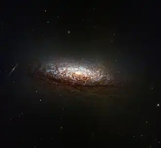 Галактика имеет необычную структуру с пересекающей ее пылевой полосой и рассматривается как один из возможных источников рентгеновского излучения, обнаруженного первой орбитальной рентгеновской обсерваторией[8].