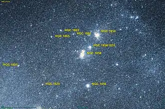 - ↑ New General Catalog Objects: NGC 1850 - 1899. cseligman.com. Дата обращения: 1 марта 2021. Архивировано 13 октября 2018 года.