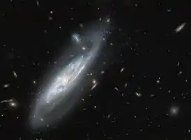 Галактика находится в скоплении Волос Вероники. У галактики есть «хвост» длиной 65 кпк, наблюдаемый в линии H-альфа и направленный в противоположную сторону от центра скопления. Галактика потеряла 4⋅109 M⊙ газа, который сформировал хвост, и учитывая условия в скоплении Волос Вероники, лобовое давление от межгалактической среды могло удалить такое количество газа из галактики менее чем за 200 миллионов лет. Галактика имеет высокий темп звездообразования, 9,8 M⊙/год. По всей видимости, галактика впервые сближается со скоплеинем и движется радиально в направлении его центра[5].