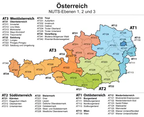 NUTS (Nomenclature of Territorial Units for Statistics)-коды Австрии (AT) насчитывают три уровня: