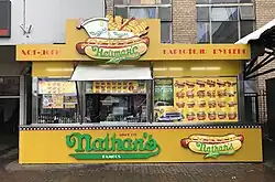 Самая первая закусочная Nathan’s Famous по прежнему существует и находится там же, где и была основана в 1916 году. Закусочная работает круглый год, обслуживая клиентов внутри, а в летние месяцы, при наплыве посетителей, открываются спецокна для обслуживания возросшего числа клиентов прямо с улицы.