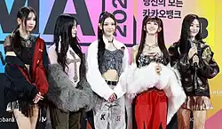 ![]() NewJeans в 2023 году. Слева направо: Ханни, Даниэль, Минджи, Хеин и Хэрин | |