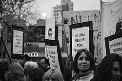 - ↑ Argentina: 200,000 rally against femicide and domestic violence in Buenos Aires (англ.). International Business Times UK (4 июня 2015). Дата обращения: 26 декабря 2021. Архивировано 26 августа 2018 года.