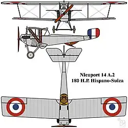 - Nieuport 14A2 — основной вариант (14 — модель, A — разведчик, 2 — количество членов экипажа).