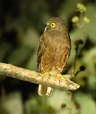 Ninox obscura (лат.) — вид птиц из рода иглоногих сов семейства совиных. Подвидов не выделяют[1]. Оперение голубовато-кофейно-коричневое сверху и снизу. Подхвостье со слабой белой каймой. Глаза желтые, клюв темно-синий. Данный вид обитает в лесах и редколесьях на низких высотах, где, как считается, питается крупными насекомыми.