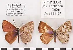 - ↑ Okubo K., 2007. A new species of Niphanda (Lepidoptera, Lycaenidae) from Mindanao, the Philippines. Trans. lepid. Soc. Japan. 58(4): 410—412