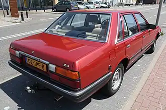 Европейские экспортные модели были карбюраторные 2,0 (DX) и 2,4 (рядный шестицилиндровый SGL), мощностью 97 л. с. (71 кВт) и 120 л. с. (88 кВт) соответственно, либо с большим 2,8-литровым дизелем мощностью 82 л. с. (60 кВт).[2] Инжекторный 2,4-литровый двигатель мощностью 127 л. с. (93 кВт) позже появился на некоторых рынках.[3] Крупные японские автомобили были не очень популярны среди автолюбителей в Европе, покупались, в основном, дизельные автомобили для использования в такси. Автомобили с установленными двигателями L24 появились на рынке Ближнего Востока (в основном, Саудовской Аравии) в 1982 году.