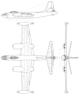 - Силовая установка: 4 × ТРД General Electric J47-GE-13