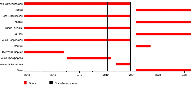 - Виктория Верник — род. 16 февраля 2000 (25 лет)[53] (2012—2015)