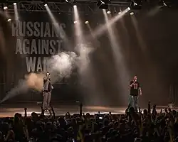 ![]() Благотворительное выступление Оксимирона в Берлине в рамках серии концертов «Русские (Россияне) против войны (RAW)» (2022) | |