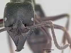 Крупного размера муравьи (около 2 см) буровато-чёрного цвета. Заднегрудка округлая без проподеальных шипиков. Голова субквадратная, жвалы крупные с несколькими зубцами (до 18). Глаза расположены в переднебоковых частях головы. Стебелёк между грудкой и брюшком состоит из одного членика с толстой вертикальной чешуйкой. Первый тергит брюшка с угловатыми антеролатеральными краями и он отделён глубокой перетяжкой от 2-го тергита[1].