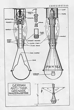 Panzerwurfmine разработана таким образом, что достичь стабильного полёта, поэтому она имела большие стабилизаторы или паруса в хвостовой части для стабилизации траектории и достижения угла в 90 градусов. Когда PWM попадает в броню, активируется кумулятивный заряд. Однако, в бою Panzerwurfmine часто не оправдывала надежд, из-за недалёкого расстояния броска, а также из-за не возможности достижения 90 градусов, уменьшая эффективность.
