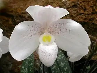 Paphiopedilum niveum (возможные русские названия: Пафиопедилум снежный[1] или Пафиопедилюм снежный[2]) — вид многолетних наземных трявянистых растений семейства Орхидные.