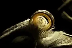 Тело гусеницы цилиндрическое бледно-зелёного цвета с желтовато-белыми полосками по бокам с каждой стороны, голова и анальный сегмент с короткими шипами; с 3-го по 12-й сегмент шипы более разветвленные красновато-коричневого цвета[1]. Куколка длиной 4—5 см веретеновидной формы, коричневого цвета.