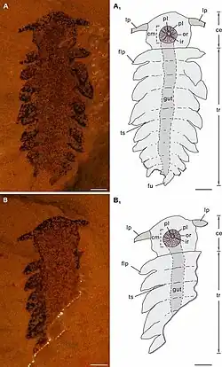 - ↑ McCall, Christian R.A. (2023-12-13). A large pelagic lobopodian from the Cambrian Pioche Shale of Nevada. Journal of Paleontology: 1–16. doi:10.1017/jpa.2023.63.