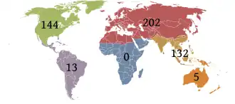 В семействе описано 487 видов[2]. Подавляющая часть представителей обитает в Палеарктике, Неарктике и Индомалайской биогеографической зоне[3]: