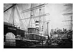 - ↑ Tall Ship Peking Loaded Whole into a Larger Vessel (англ.). waterfrontalliance.org. Waterwire — News and Stories about the waterways of New York and New Jersey (21 июля 2017).
