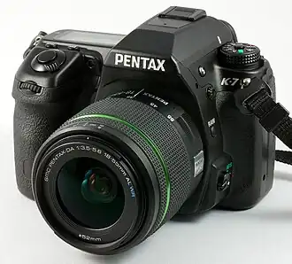 Pentax K-7 — цифровой однообъективный зеркальный фотоаппарат фирмы Hoya Corporation Pentax Imaging Systems Division. Анонсирован 20 мая 2009 года и позиционируется компанией как камера профессионального класса[1]. Камера оснащена пылевлагонепроницаемым корпусом из магниевого сплава. По сравнению с предшественницей K20D в камере были усовершенствованы: модуль автофокуса, встроенная система стабилизации, видоискатель, затвор, функция непрерывной съёмки, система замера экспозиции. Сама камера, по сравнению с предшественницей, стала меньше и легче. Добавились: видеозапись, алгоритм расширения динамического диапазона, автоматическая коррекция горизонта и электронный уровень. Заявлена работоспособность при температурах до −10 °C. С камерой поставляются кит-объективы в пылевлагозащитном исполнении («WR»). Производитель позиционирует камеру как самую компактную в своем классе.