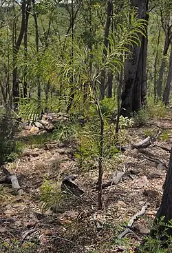 Растёт вдоль водотоков, ущелий и обнажений песчаника, как правило, на песчаниковых или аллювиальных почвах[8]. Также встречается на гранитных и латеритных почвах и редко на глинистых почвах[3]. Растёт в эвкалиптовых, мелалеуковых или смешанных открытых лесных сообществах[3].