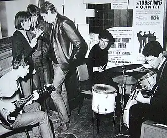 ![]() Pink Floyd в 1968 году. Слева направо: стоят Ник Мейсон, Сид Барретт, Роджер Уотерс, Ричард Райт, сидит Дэвид Гилмор | |